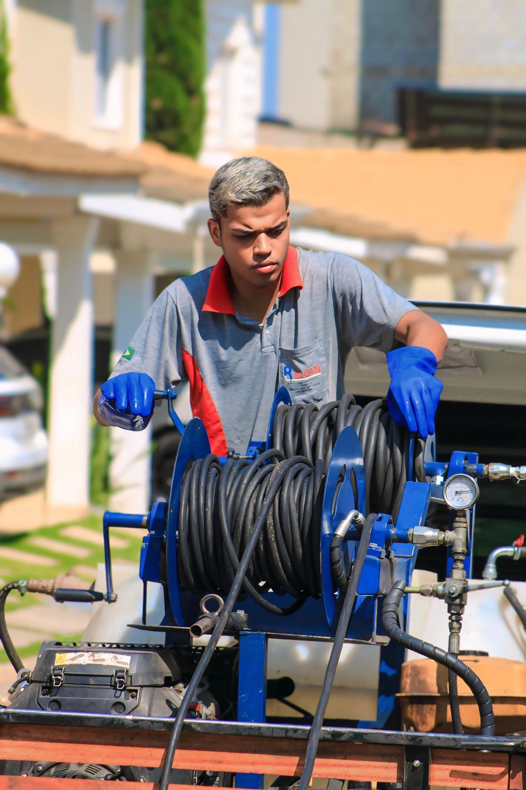 O que é hidrojateamento de alta pressão? O hidrojateamento é uma das tecnologias mais avançadas para limpar fossas e tubulações. Esse processo utiliza jatos de água com alta velocidade e pressão para remover a sujeira. Dessa forma, ocorre a desobstrução completa do encanamento.